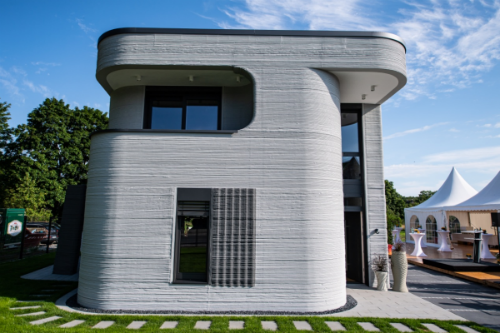 当地时间2021年7月26日,德国北莱茵-威斯特法伦州的贝库姆,德国首个3D打印住宅竣工。该住宅由两层独立式房屋组成,每层楼的居住空间约为80平方米,并使用3D建筑打印机进行建造。