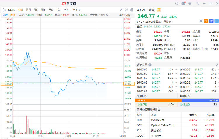 苹果公司第三财季营收和每股收益均超出华尔街分析师此前预期,但其盘后股价仍跌1%。