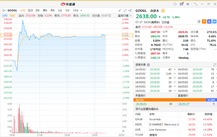 Alphabet第二季度营收和每股摊薄收益均超出华尔街分析师此前预期,从而推动其盘后股价上涨逾2%。