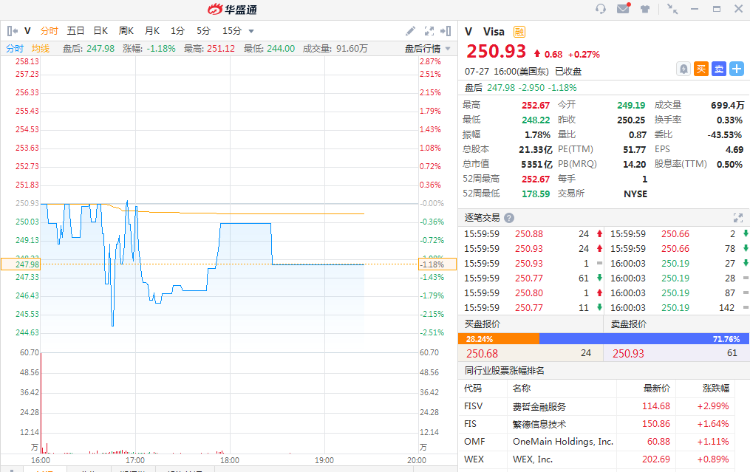VISA公布了2021财年第三季度财务业绩。数据显示,VISAQ3净营收为61.30亿美元,同比增长27%;净利润为25.75亿美元,同比增长9%;每股收益1.18美元,同比增长10%。