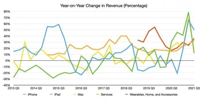 2、iPhone Q3销售猛增近50%,全线产品销售额均实现两位数增长