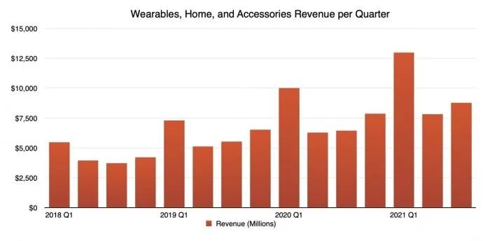 此外,Mac销售额82.4亿美元,同比增长16%,高于分析师预计的80.7亿美元;iPad销售额73.7亿美元,同比增长12%,高于分析师预计的71.5亿美元;可穿戴设备、家居及配件销售额87.6亿美元,同比增长40%,高于分析师预计的78亿美元。三项重要业务的销售额都超出分析师预期。