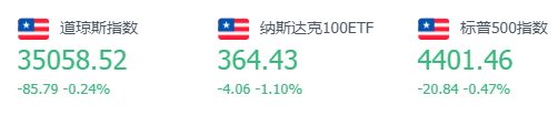 道指跌85.79点,或0.24%,报35058.52点;纳指跌180.14点,或1.21%,报14660.58点;标普500指数跌20.84点,或0.47%,报4401.46点。