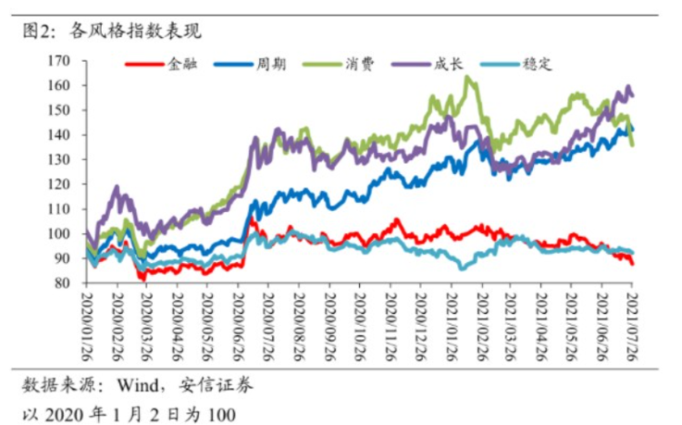 对板块而言,消费低迷已经导致市场下修相关板块的盈利预期,比如家电、小食品、调味品行业,下半年在消费倾向下降的背景下,这一趋势或将延续。与此同时共同富裕的政策对高端白酒行业的影响总体偏负面,当前消费板块偏高的估值或许仍然需要消化。