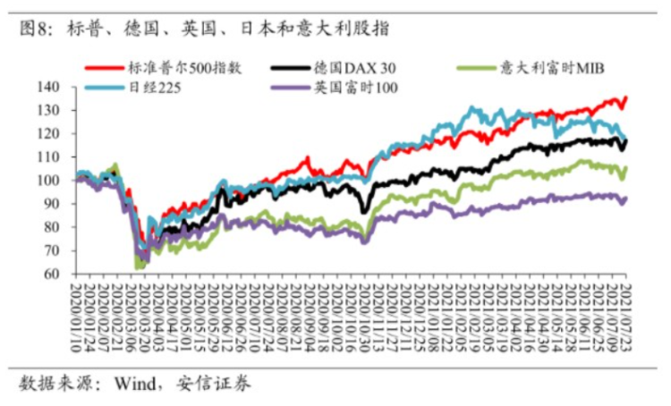 近期欧央行在新的通胀目标框架下(将“低于2%”改为“2%”),召开了议息会议。会议决定维持当前政策利率水平不变,资产购买计划持续至明年3月。考虑到欧元区的经济复苏以及通胀表现都相对弱于美国,在汲取上一轮政策退出的经验后,预计欧央行Taper的时点将晚于美联储。