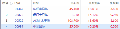 在本周惨淡行情之下,半导体板块表现却及其亮眼。中芯国际昨日领衔一众芯片股逆市拉升,盘中一度涨逾14%。今日,依然延续涨势,截至发稿,华虹半导体涨逾8%,晶门半导体涨逾4%,ASM太平洋涨逾3%。