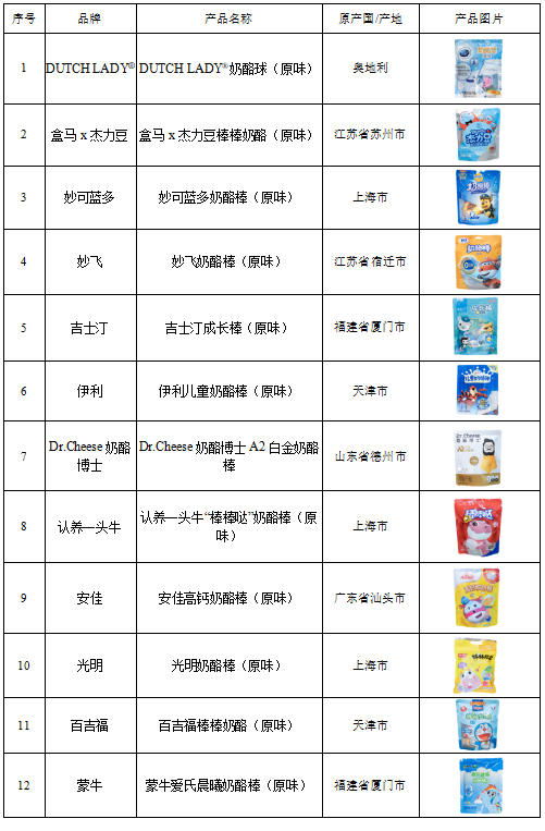 12款奶酪棒卫生、安全指标均符合国标要求,三聚氰胺未检出。