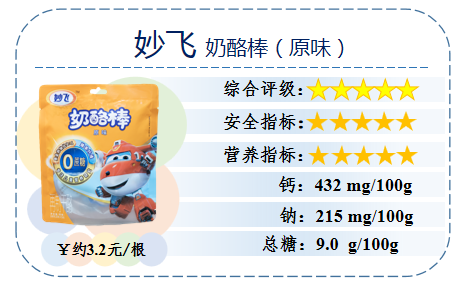 妙飞、安佳品牌的奶酪棒样品含糖量较少。