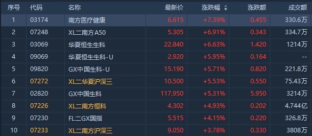港股市场涨幅前十ETF