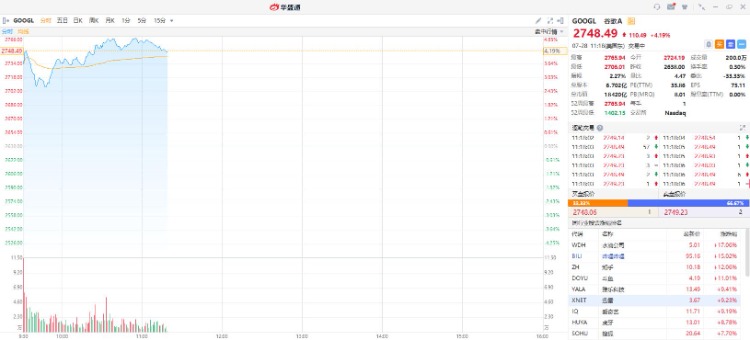 华盛资讯7月28日消息,美股早盘, 美股大型科技股齐涨。截至发稿,推特(TWTR)涨超4%,推特允许零售商在他们的个人主页上销售产品;谷歌A(GOOGL)涨超4%,盘中股价续创历史新高超2760美元/股;AMD涨近6%,绩后获花旗将AMD目标价从95美元上调至100美元。
