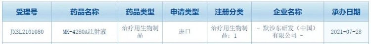 7月28日,中国国家药品监督管理局药品审评中心(CDE)网站公示显示,默沙东(MSD)的1类新药MK-4280A注射液临床试验申请获得受理。公开资料显示,MK-4280A是LAG-3抗体favezelimab(MK-4280)和PD-1抑制剂Keytruda的联合治疗方案,这两款药物均由默沙东开发。