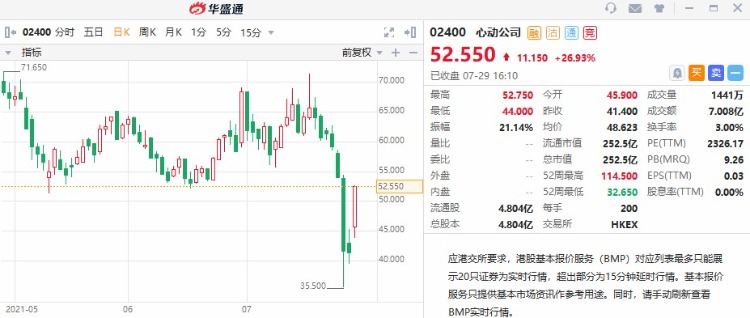 今天心动公司尾盘收涨26.93%,报52.55港元,于港股游戏板块中涨幅最高。