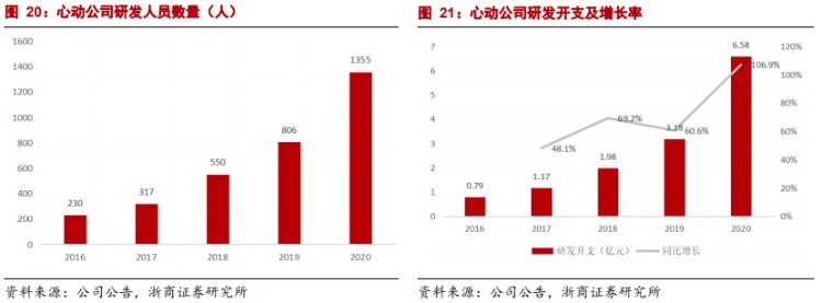 提高自研能力,是为心动持续增长保驾护航的重中之重。2020 年心动公司投入了大量资源提升自研能力,研发人员数量从806人扩充至1355人,研发开支同比增长110%。