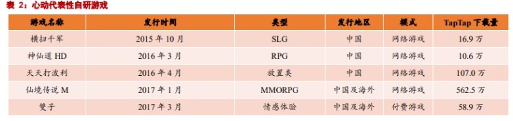 目前心动累计发行 10 款自研游戏,涵盖 MMORPG、SLG、RPG 等多个品类,优质独家内容为 TapTap 稳定输入更多新增用户。处于研发阶段的游戏共 13 款,其中已经有两款的休闲竞技游戏在 TapTap 进行封闭测试,同时计划于 2021 年全球发行。