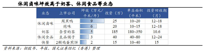 通过特许加盟的方式,周黑鸭可以有效地减少成本,并加快开店的效率。而相较于其他业态,卤制品门店投资少、坪效高、盈利性好,门店的扩张更具有效率。