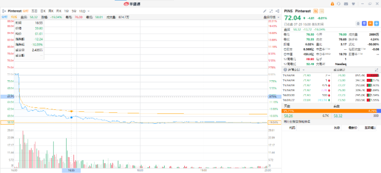 Pinterest 第二季度营收和每股摊薄收益均超出华尔街分析师预期,但其美国月度活跃用户人数同比下降,且全球月度活跃用户人数未达预期,导致盘后股价大幅下跌逾 18%。