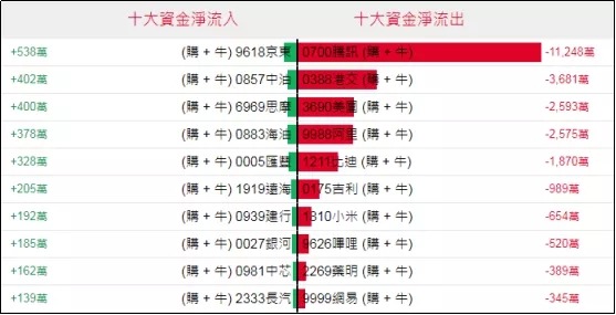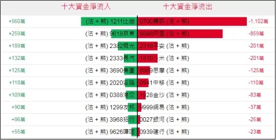 淡仓(认沽证及熊证)方面,周四比迪相关淡仓单日录得约560万港元资金净流入;腾讯、阿里相关淡仓单日分别录得1102万、859万港元资金净流出。