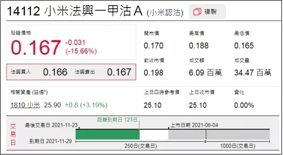 2、看错方向:小米法兴一甲沽(14112.HK),周四下跌15.66%。