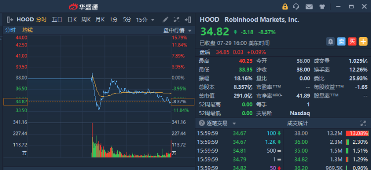 开局不利 网红券商Robinhood首秀破发 收跌逾8%