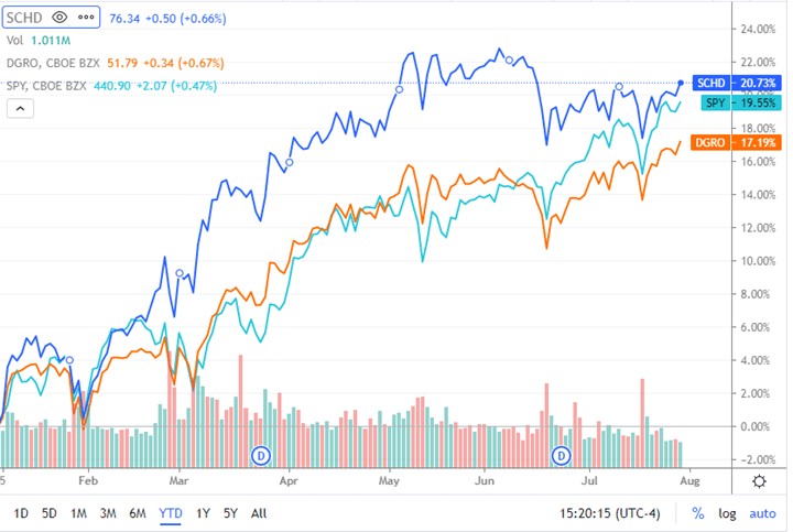 至于价格走势,SCHD年初至今已上涨约18.24%,周四交易时段收盘上涨0.62%。
