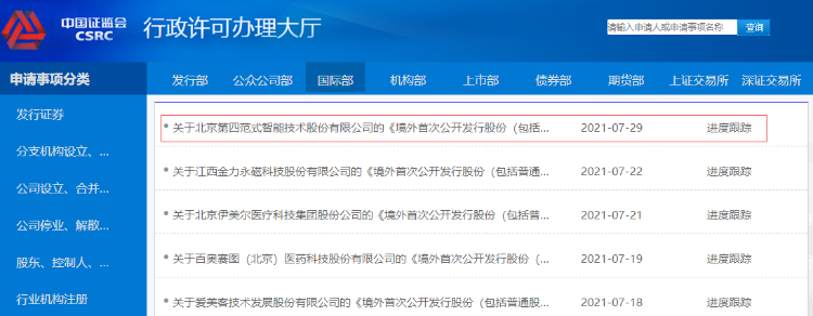 2021年7月29日,中国证监会国际部披露了北京第四范式智能技术股份有限公司 (简称"第四范式”)提交的《境外首次公开发行股份(包括普通股、优先股等各类股票及股票派生的形式)审批》材料。