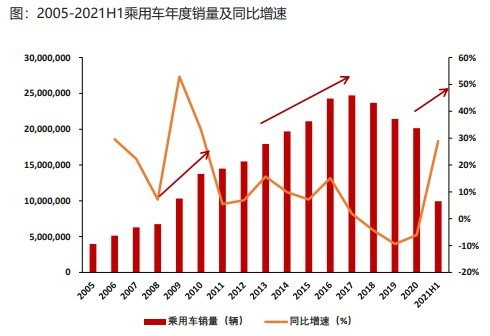 自20年以来,国家陆续出台的限购城市牌照增加、汽车下乡、二手车流通等政策,于大约20年中开启了上行周期,但由于20年四季度开始的芯片短缺,或将将本轮汽车周期拉长至22年。浙商证券认为从今年年底开始或将进入补库存阶段,而当下周期仍在上行通道。