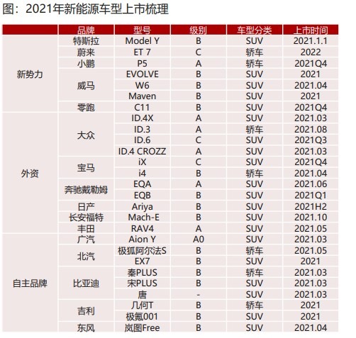 最后,21年新能源汽车分层级车型热销,低端车型如宏光MINI EV、奔奔e-star,中端车型如Model 3、比亚迪汉,高端车型如蔚来ET7、ID6、极大丰富产品矩阵,有望孕育更多市场需求。 而新能源下乡的政策也有望拉动低端车型的需求。
