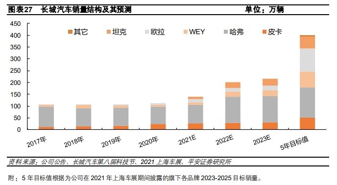 在向智能电动化转型的过程当中,根据需求对产品的定义能力将成为目前阶段车企的核心竞争力。公司新推出的坦克、欧拉等车型销量增长迅速,也证明了公司的该项能力。