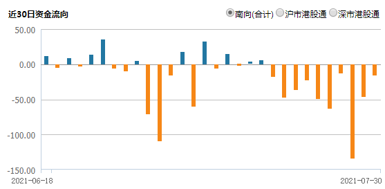南下资金净流出港股15.95亿港元,上周为净流入86.53亿港元;