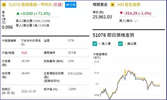 1、强势轮证:恒指瑞通一甲熊(51076.HK),上周五大涨71.43%;