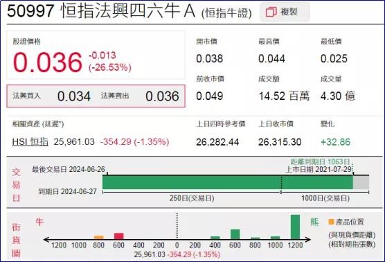 2、看错方向:恒指法兴四六牛(50997.HK),上周五下跌26.53%。