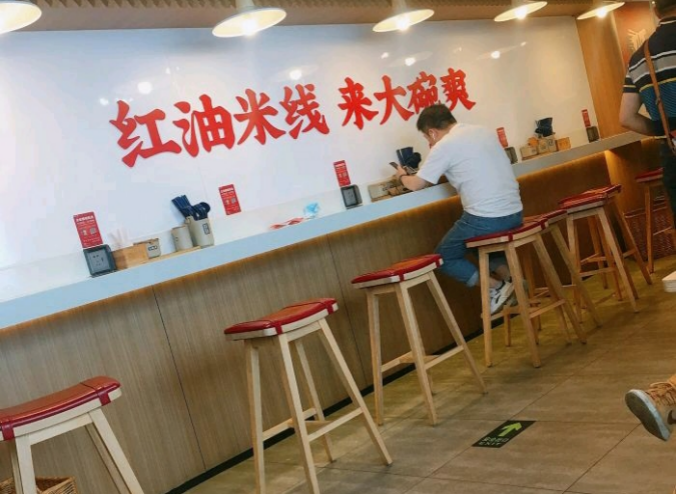 就拿秦小贤来举例,在店内,取餐采用一字型动线,餐桌也多是“面壁思过型”餐桌,从店内布局来引导消费者习惯于流程化用餐、孤独式用餐。