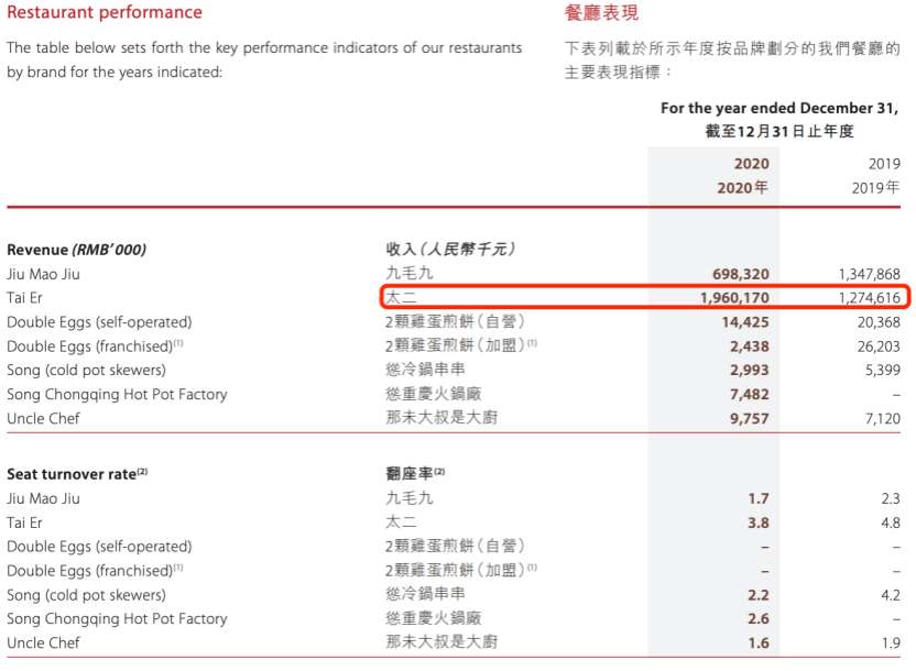 其中,太二酸菜鱼成为了九毛九的顶流,业绩十分突出,2020年实现全年营收19.6亿元。