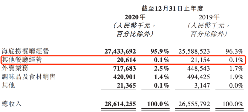 实际上,海底捞做子品牌也折腾了好几年了,一直都是雷声大雨点小,没有十分突出的品牌跑出来。根据海底捞公布的2020年全年业绩,其他餐厅经营所得2000万,占总收入0.1%,基本可以忽略不计。
