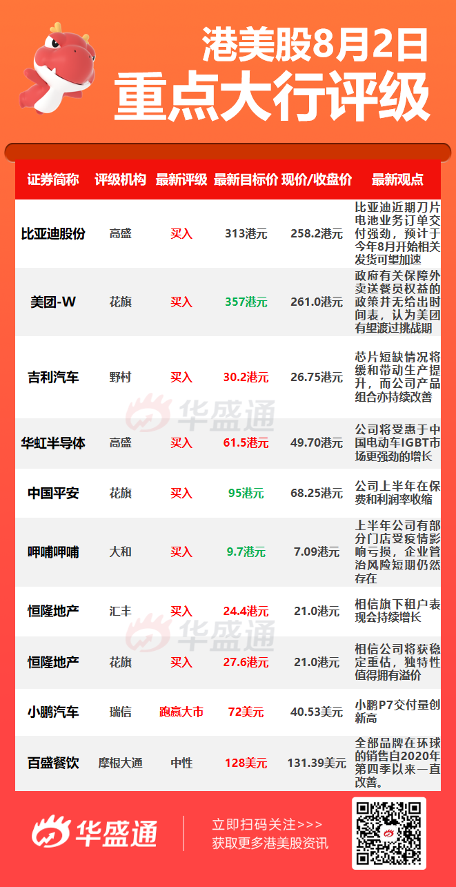 摩根大通发表研究报告指,百胜餐饮集团(YUM.US)第二季度经调整每股盈利为1.16美元,胜该行预期,主要由于美国的Taco Bell业务表现强劲,两年的同店销售增长约12%,而该行预测为约7%,同时获得更高毛利率。该行将其美股目标价由120美元上调至128美元,维持中性评级。