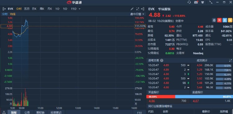 华盛资讯8月2日讯,部分中概股盘中走高,华瑞服装大涨115%,比特数字涨23%,KBS服饰涨15%,满帮涨13%,大公文化涨11%,爱奇艺涨3%,京东、百度、知乎、网易、雾芯科技均涨超1%