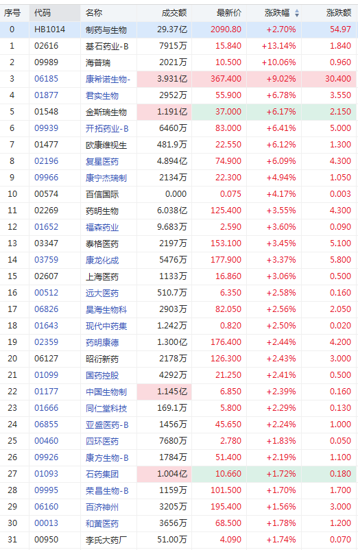 华盛资讯8月3日消息,生物制药板块早盘拉升走高,截止发稿,基石药业-B上涨13%;海普瑞上涨10%;康希诺生物-B上涨9%;君实生物、开拓药业-B、金斯瑞生物科技、欧康维视生物-B、复星医药等涨超6%;康宁杰瑞制药、百信国际等涨超4%;四环医药等涨超1%。