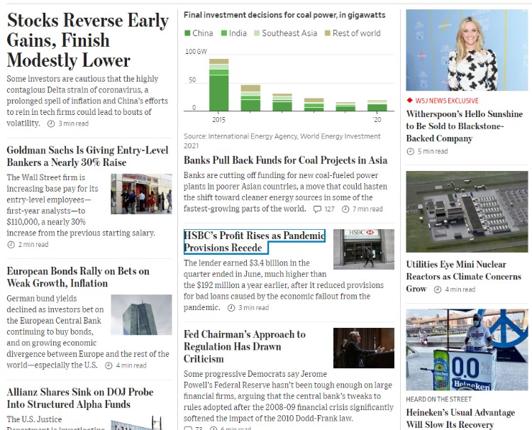 美股周一收盘涨跌不一,道指最高上涨至35192.11点,创盘中历史新高。投资者正在权衡强劲的财报与德尔塔毒株迅速传播的影响,美债收益率与油价下跌令市场担心经济前景。本周美国国会可能通过万亿美元基建法案。