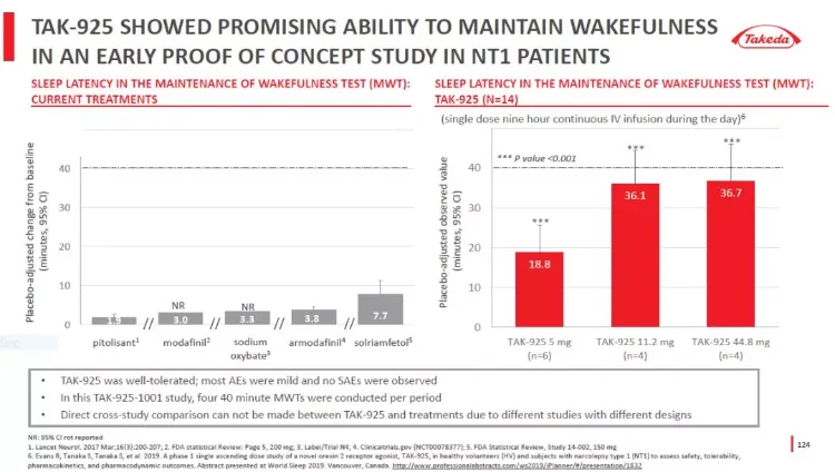 NT1是一种改变睡眠-觉醒周期的慢性神经系统疾病。EDS是NT1的标志性症状,表现为患者不能全天保持清醒和警觉,在不适当的时间入睡。TAK-994旨在选择性靶向食欲肽2受体,目前正在2期临床试验中接受评估。