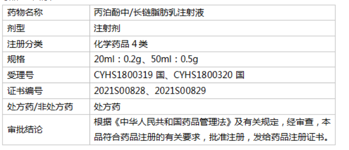 丙泊酚中/长链脂肪乳注射液是一种起效迅速的短效静脉用全身麻醉剂,可用于一个月以上的婴幼儿。