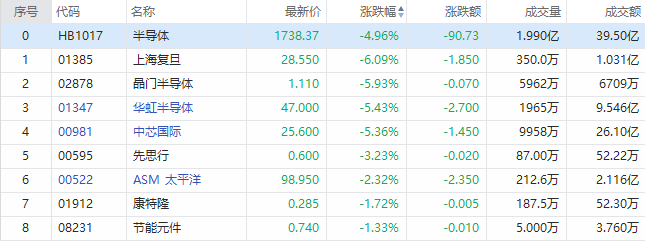 华盛资讯8月3日消息,受市场监管总局调查涉嫌哄抬汽车芯片企业消息影响,半导体板块午后加速下跌,截止发稿,上海复旦跌6.09%;晶门半导体跌5.93%;华虹半导体跌5.43%;中芯国际跌5.36%;ASM太平洋跌2.32%。