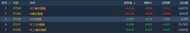 南方两倍看空恒指 $07500.HK 涨0.25%,成交约6.807亿港元。