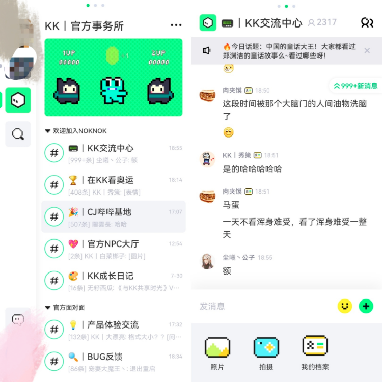 不出所料,腾讯将游戏和社交进行了完美融合,Tech星球独家获悉,PCG内测了一款名为“NokNok”的游戏社交产品,中文名为“闹闹社区”,整个主题偏像素风,内部称之为“KK”。这也是姚晓光掌舵PCG事业群3个多月后,带来了首个社交产品。