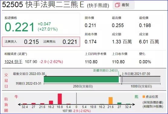 1、强势轮证:快手法兴二三熊(52505.HK),周二大涨27.01%;