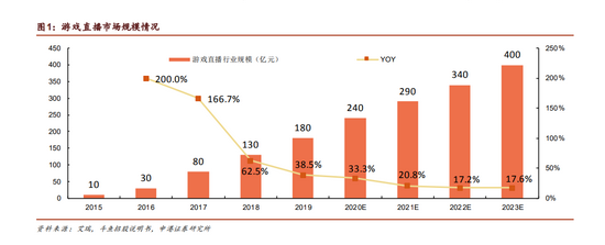 值得一提的是,我国游戏直播行业市场规模增速明显放缓,游戏直播业务的变现能力或已遭遇天花板。申港证券研究报告显示,国内游戏直播行业已于2018年进入成熟期,预计2022年的年复合增速为17.2%。