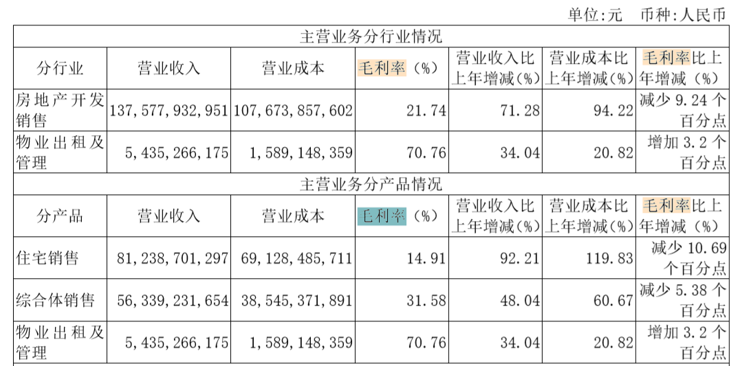 2020年年报显示,新城控股的毛利率下滑主要是因为住宅销售的毛利率同比减少了10.69个百分点、综合体销售毛利率减少了5.38个百分点。