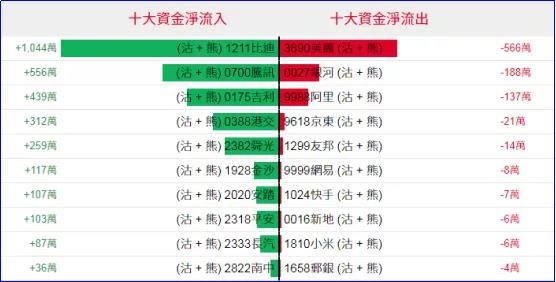 淡仓(认沽证及熊证)方面,周三比迪、腾讯、吉利相关淡仓分别约1044万、445万及439万港元资金净流入部署;美团、银河、阿里相关淡仓则见部分资金净流出套现。