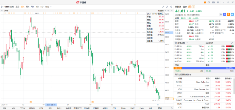 截止8月4日美股收盘,Uber股价跌2.29%,报41.81美元。