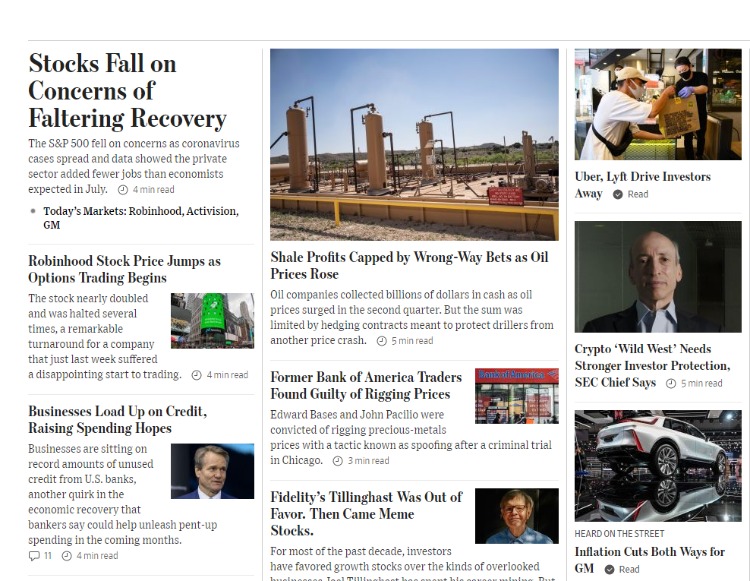 美股周三收盘涨跌不一,道指跌逾320点。令人失望的通用汽车财报与美国7月ADP就业数据令股指承压。市场仍在关注美企业绩报告与新冠德尔塔变异毒株的迅速传播。