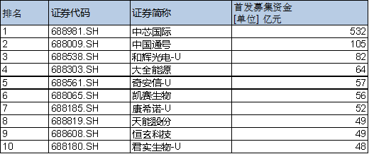 图2:科创板至2021年7月份,募集资金排名,资料来源:Wind